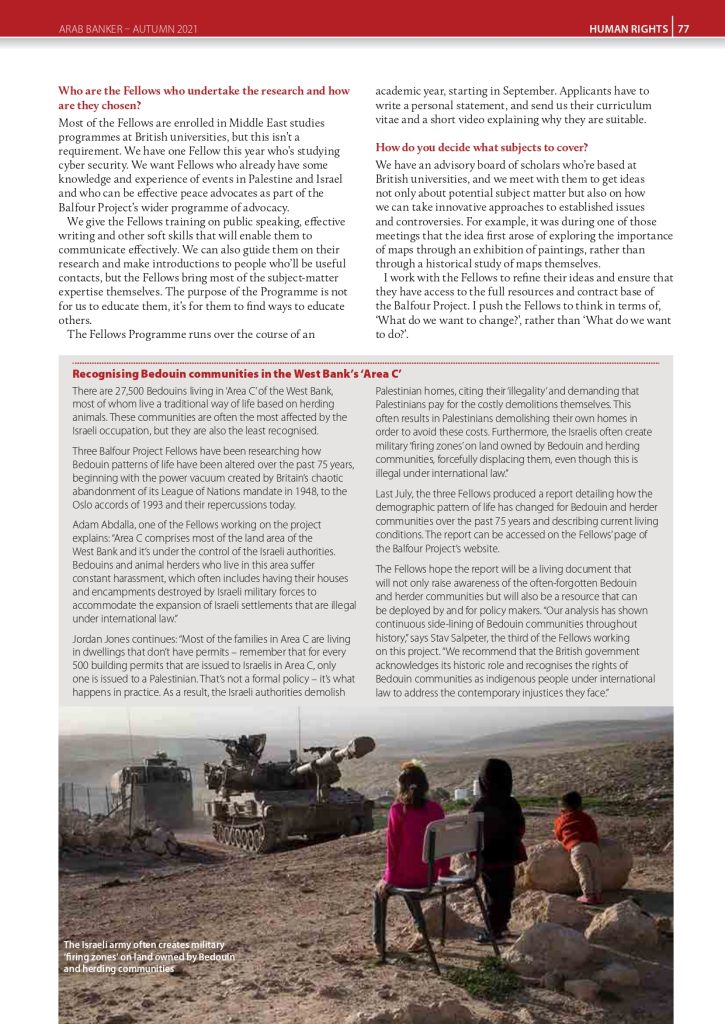 Article on the Balfour Project Fellows published in Arab Banker Magazine, Autumn 2021