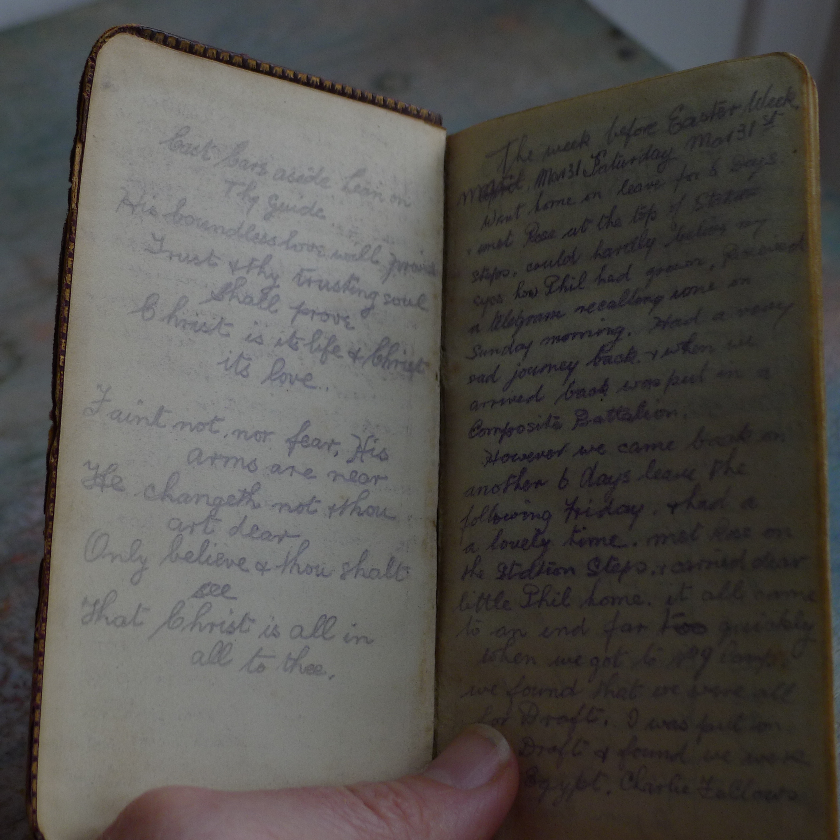 I hold in front of me my great-grandfather’s diary of the months he spent as a soldier in the British army in Egypt and Palestine during the 1st world war.