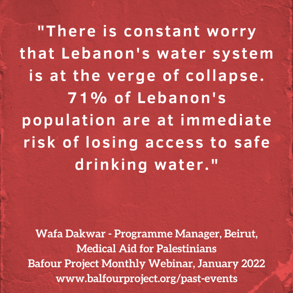 There is constant worry that Lebanon’s water system is at the verge of collapse. 71% of Lebanon’s population are at immediate risk of losing access to safe drinking water. These shortages are affecting every vital sector in the country, including the health sectors health sector and hospitals.
