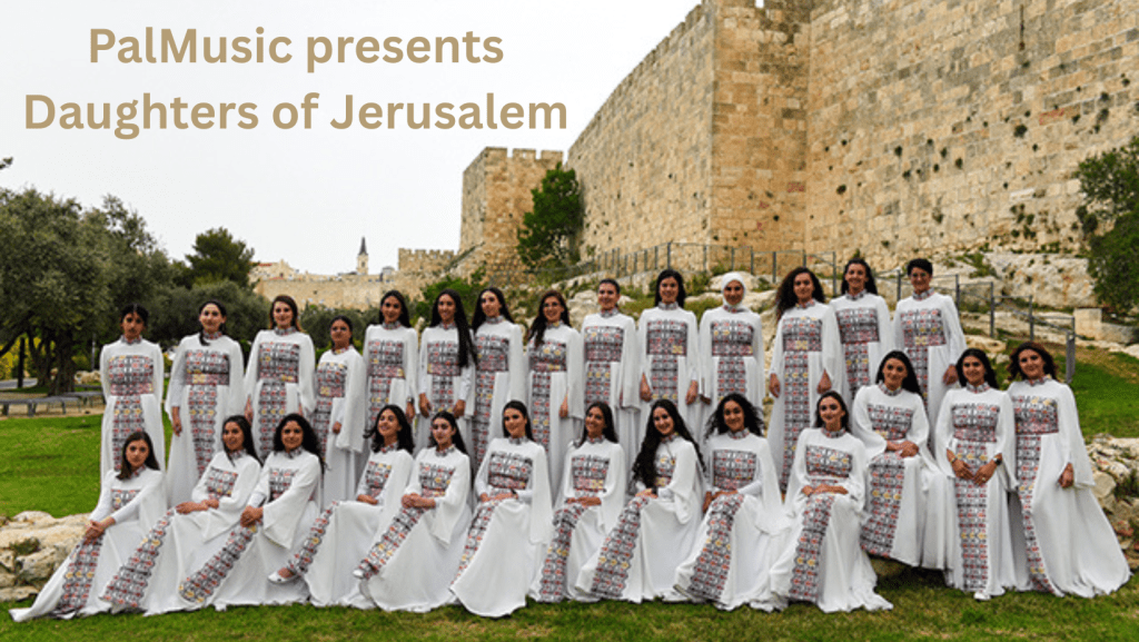 In collaboration with Irish Artists for Palestine (IAFP), PalMusic UK and the ESNCM, the Daughters of Jerusalem (DoJ), a 35-piece all-female youth choir and music ensemble, will tour Ireland and the UK for the first time. The purpose of the Tour is to promote Palestinian culture by showcasing young Palestinian musicians as a voice for hope and peace, to support the cost of ESNCM’s ongoing music scholarships and education programmes throughout Palestine and the UK, and the music education outreach programmes in refugee camps across the areas most affected by the bombing – Gaza, Al-Shati, Rafah, Jabalia, Jenin, Bureji, Al-Nuseirat , Khan Younis, Maghazi and Deir El-Balah.