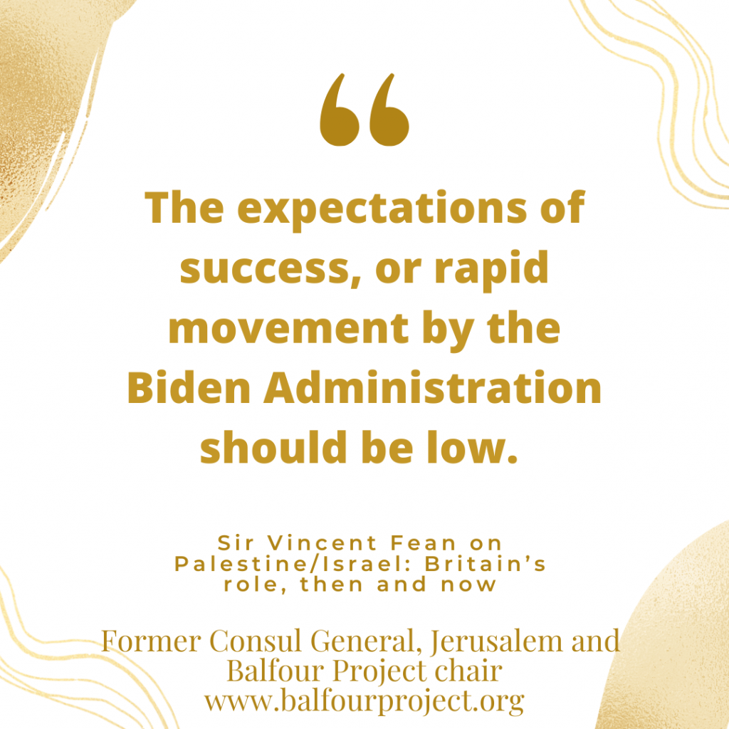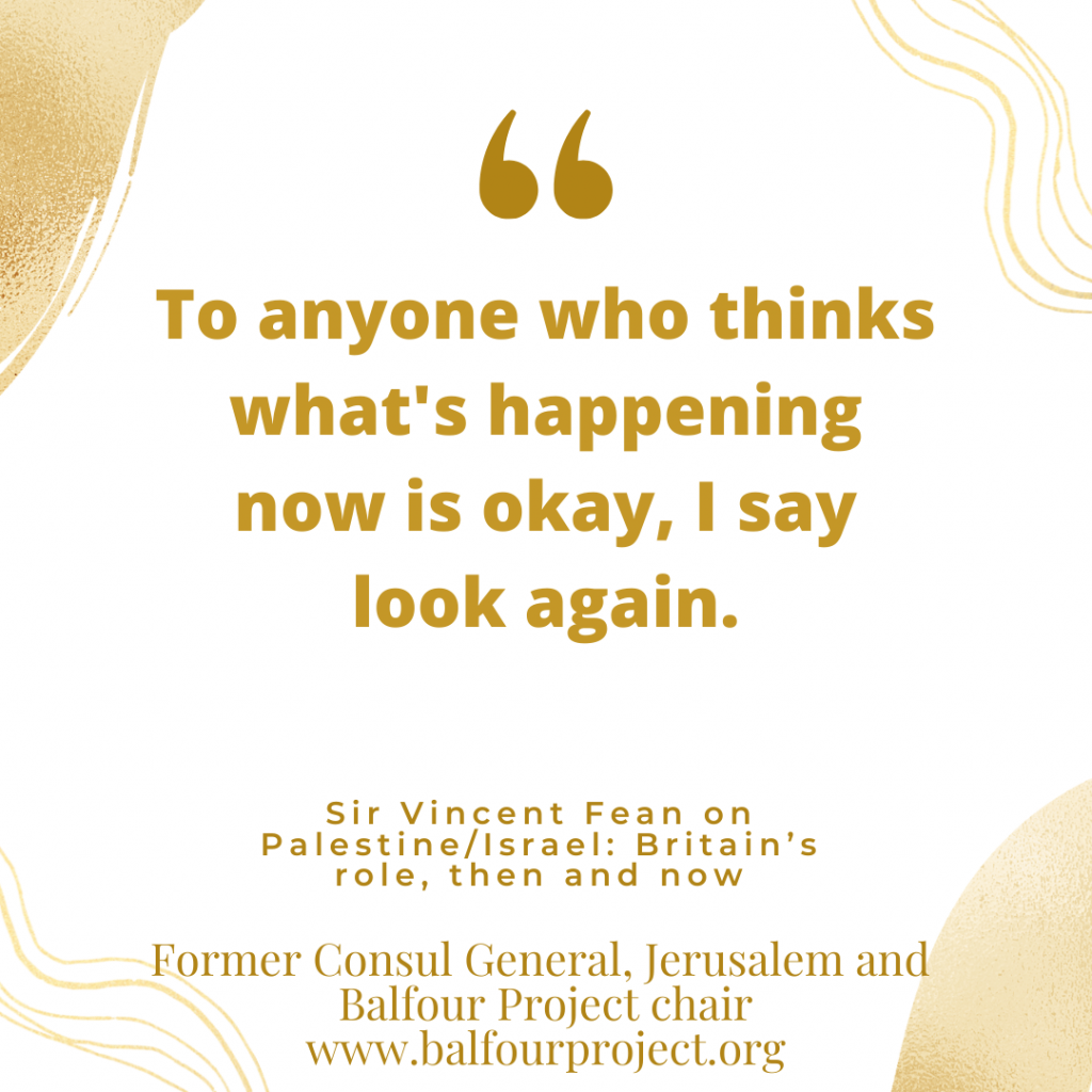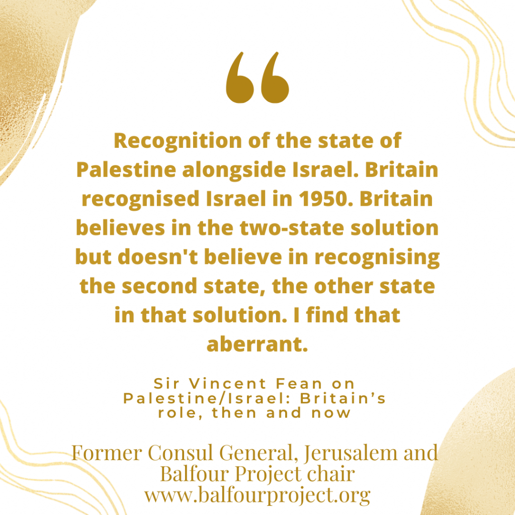 We’ve got a question from Ralph Cairns. ‘What does Sir Vincent think that the British Government could have done differently, once the British Mandate had begun, to promote fairness and justice for all in Palestine and Israel?’