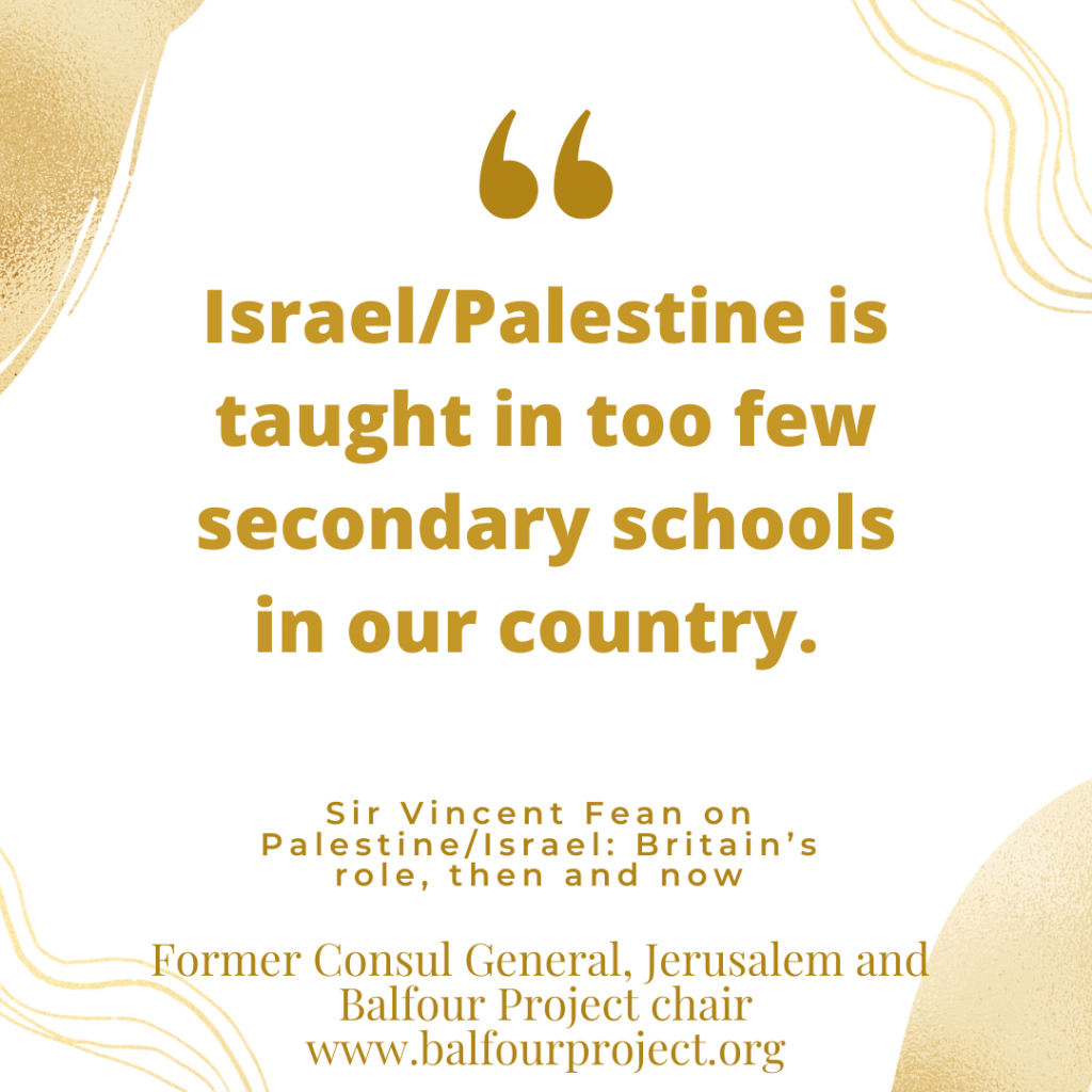 Secondary school education matters. Israel/Palestine is taught in too few secondary schools in our country. It’s a key part of Britain’s imperial / colonial past, though not a glorious part. To understand the present, you need to know how we got here and what was done in our name.
