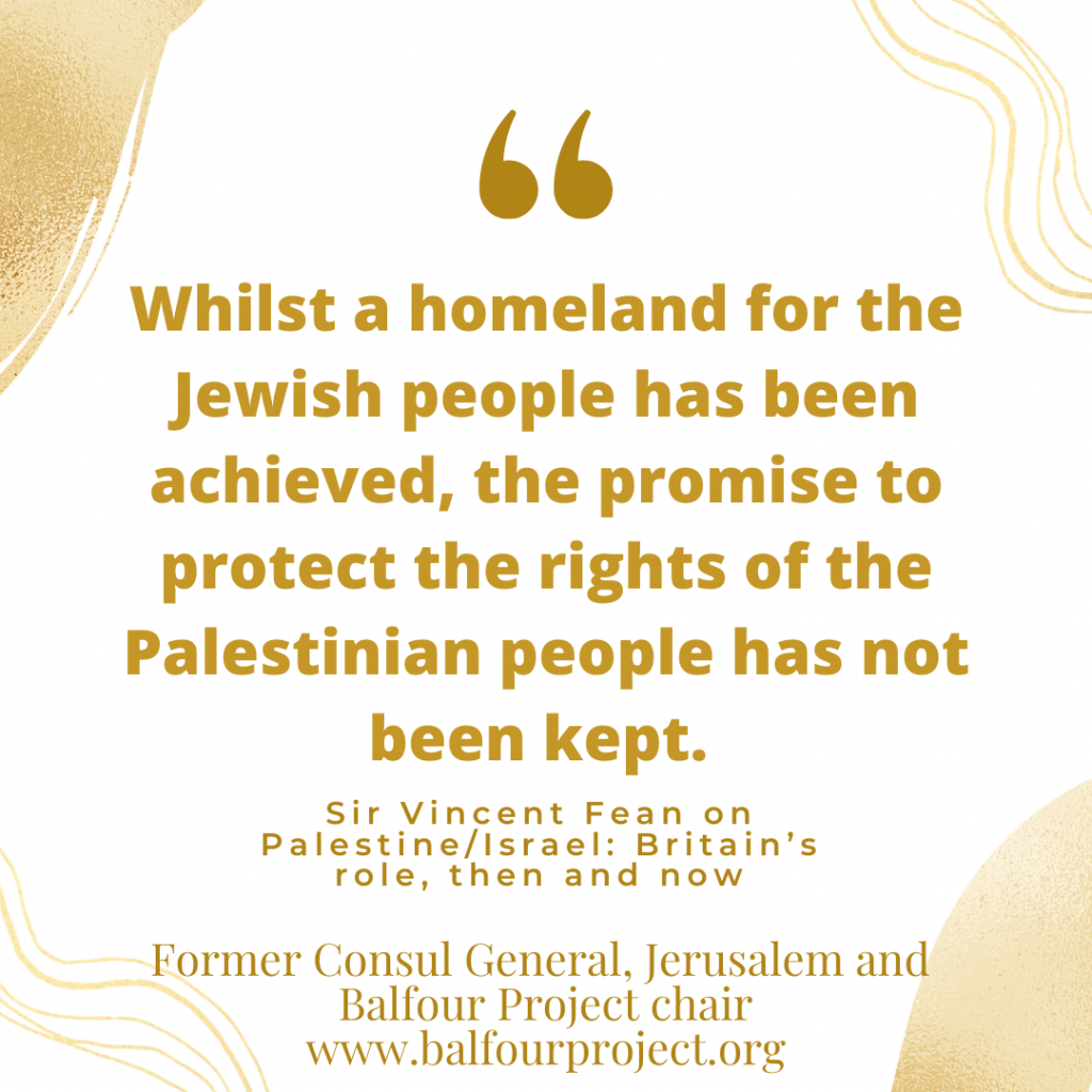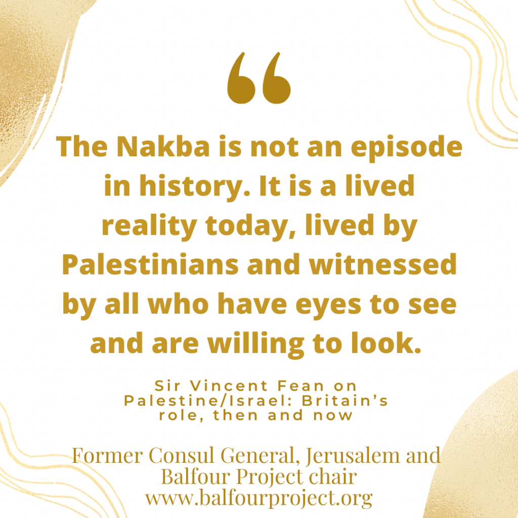 It’s quite hard for anybody to persuade politicians of 2021 to take responsibility for politicians of 1917 – 1948. There are many get-out clauses. There are many ways in which not to take that responsibility on. It’s part of the job of this charity to tell the truth, to say what Britain did and to try and say why Britain did it, making the link between what happened up to 1948 and what’s happening today, and to say Britain’s got a role to play in addressing the subject of equal rights for two peoples in one region.