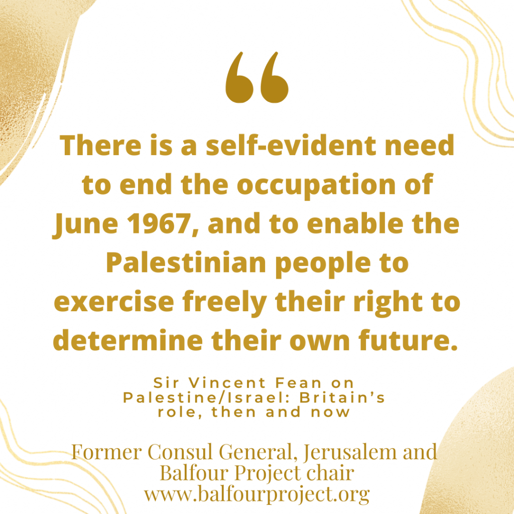 We ask our Government and civil society to understand what the Balfour Declaration and Palestine mean for both Jews and Arabs, and to acknowledge that whilst a homeland for the Jewish people has been achieved, the promise to protect the rights of the Palestinian people has not been kept. We urge the people and elected representatives of the UK to take effective action to promote justice, security and peace for both peoples. There is a self-evident need to end the occupation of June 1967, and to enable the Palestinian people to exercise freely their right to determine their own future. The right of self-determination, including the option of statehood.